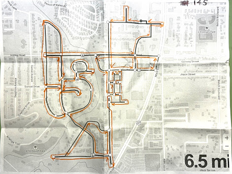 It’s a solo run for me today so I went to the Heights and worked on the map I’d actually made for last week but didn’t use. The route takes in the streets west of Main Street from Milton down to the south end of Lake Elmo and then a bunch of streets to the west of there.